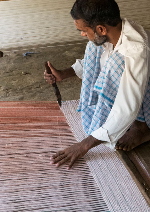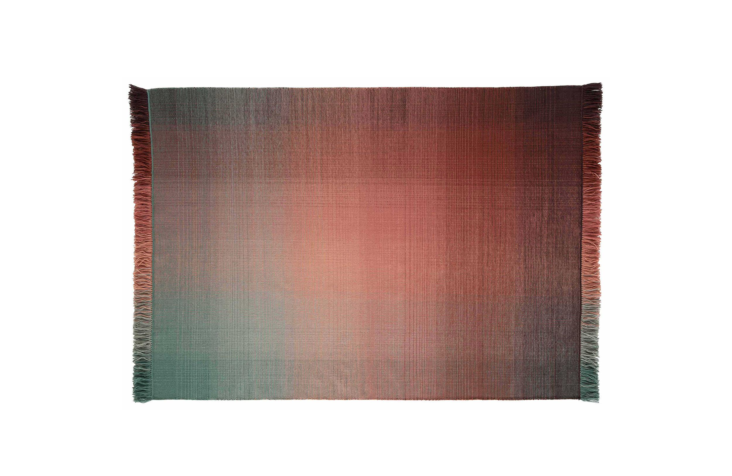 这种精致的简约风格反映了一种复杂的技术过程,以达到预期效果的密度、规律性和流动性。在同一平面上,每条地毯上都有两种渐变,一种是垂直的,一种是水平的。