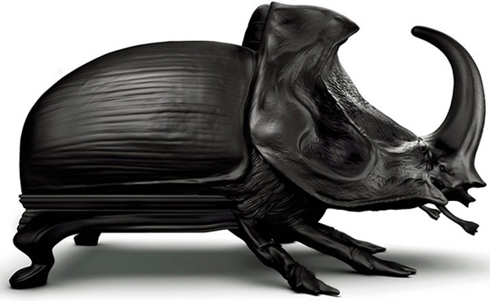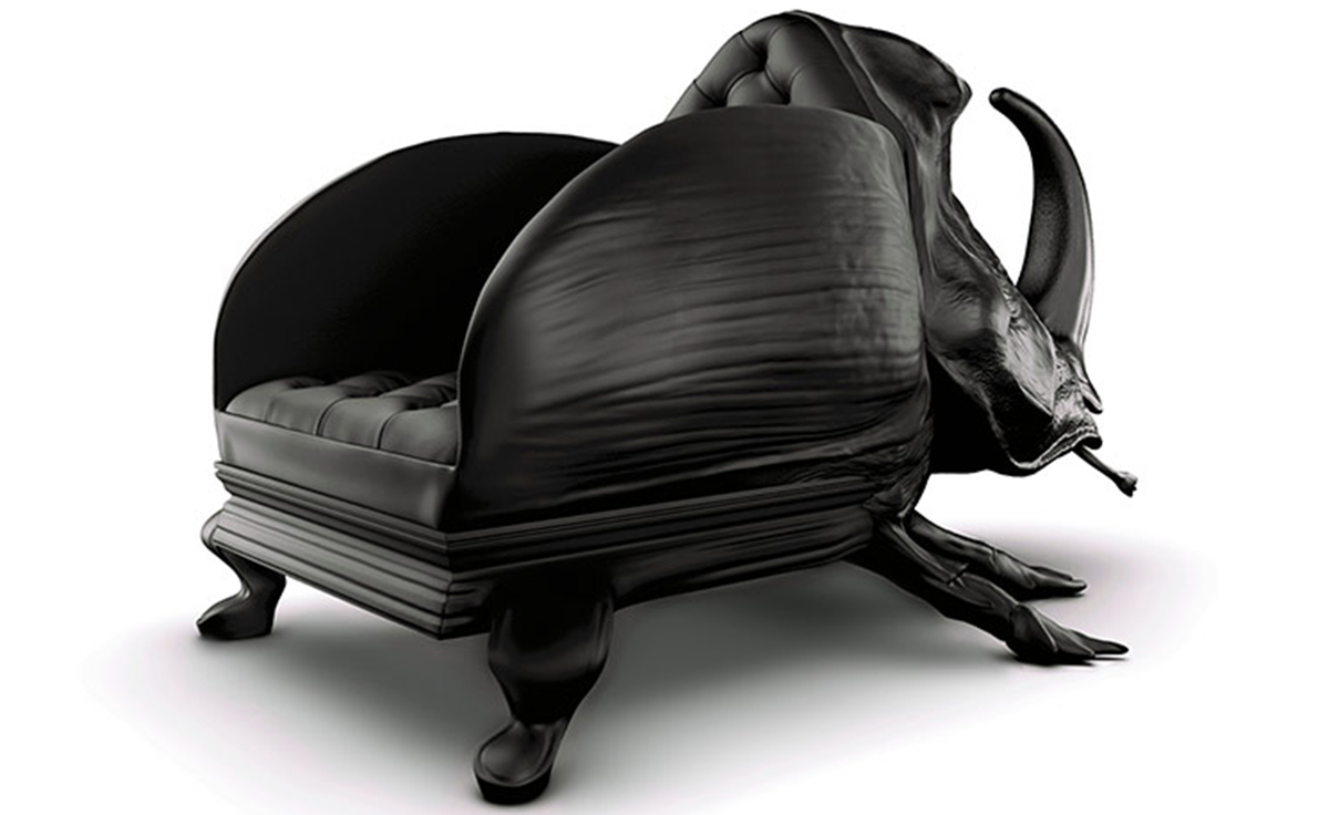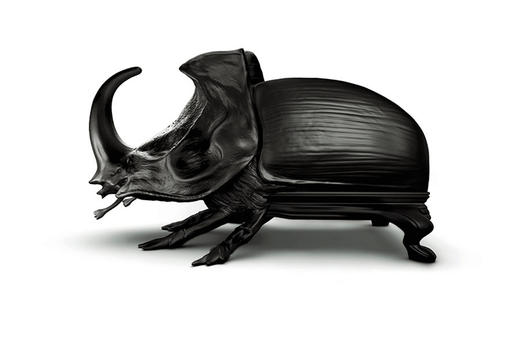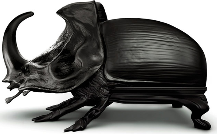 "西班牙设计师 Maximo Riera 设计了一组包括章鱼、犀牛、海象、狮子等在内的 15 件动物造型座椅系列皮椅。这个系列的动物椅集合了不同的物种,从哺乳动物到爬行动物,甚至包括昆虫。每个设计都保留了动物的自然活力,同时又准确还原动物的外观特征。这些动物椅的初衷是一种尝试,希望以动物的栖息来反映和捕捉大自然的美,并向我们星球上的整个动物王国致敬。设计师除了表现动物的野性美,也在善意的提醒人们要维持生态的平衡,尤其对濒危物种多加关注,以实现人与自然的相互依赖和谐共存。这次他的动物王座再添一员——限量版甲虫椅(Beetle Chair)。不要会错意,这个甲虫既然能成为暗黑帝国的一员,当然也不会是可爱傻气的七星瓢虫造型,这个甲虫长著大大的角,背上还突起坚硬的盔甲,六只带刺的脚配搭著獠牙,又是一副狰狞面孔,和之前的设计非常统一。甲虫椅子中集合内一个新的转折,欢迎广大昆虫物种,这是地球上最多样化的群体动物。 关于设计,座位部分位于外壳内覆盖翅膀,形成骨骼和保护动物。 甲虫的形态适应的审美功能,允许框架的构成和外在的数据被认为没有任何中断。"