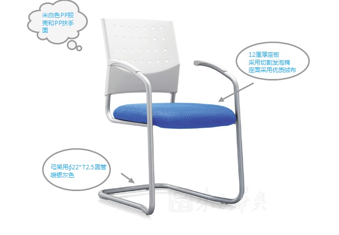A:米白色PP胶壳和PP扶手面,弓架用∮22*T2.5圆管,采用切割发泡棉,12厘厚座板,