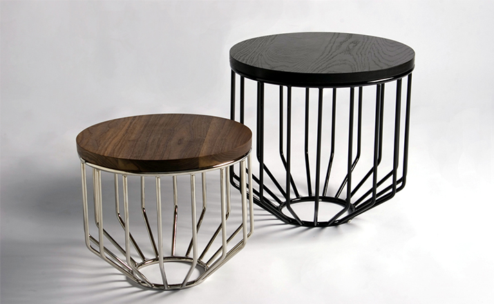 Blending sloping angles and taut lengths of bent metal are a modern interpretation of the wiry idea initially conceived by Warren Platner.The series is made up of a suite of wire tables,side tables and benches and fitted with luxurious solid wood tops.