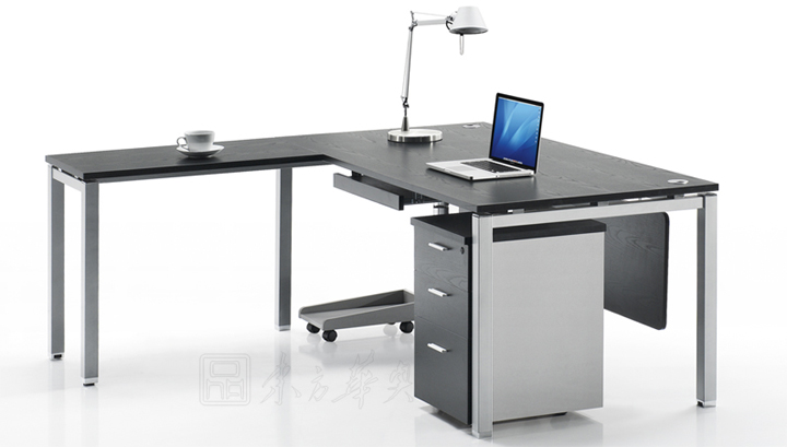 ※  上图为时尚中班台,追求造型简约时尚,也保证了主台面的整体结构以及台面的抗弯强度。长的副侧台节省使用空间,扩大储存空间。