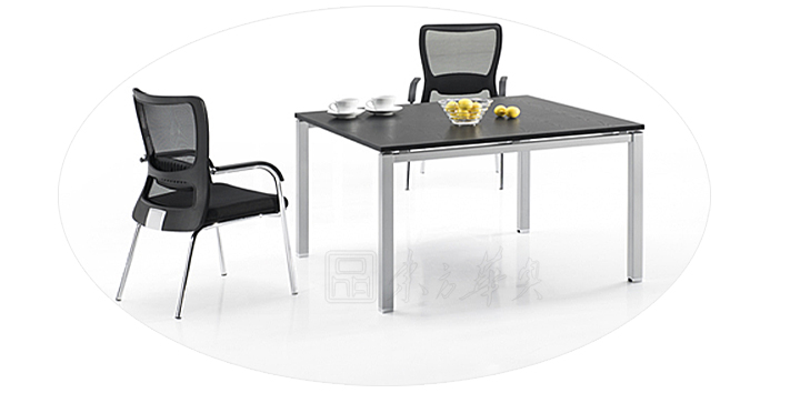 ※  上图为“方通脚”款式会议桌,脚架的颜色有银灰色和白色选择,台面板有多重选择,满足领导临时接洽和会议的需要!