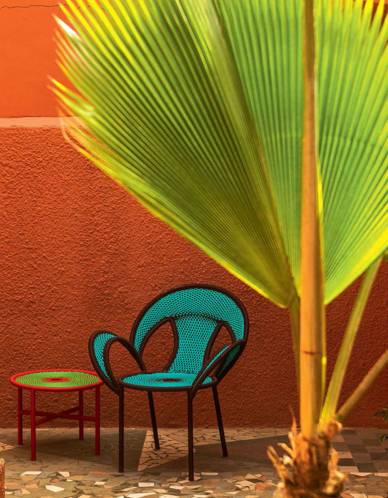 这个椅子的形状,尤其是扶手的形状设计,灵感来源于雄性鸵鸟在求偶时所跳的舞蹈,banjooli的扶手如同雄性鸵鸟伸出了翅膀,向雌性展示它们的美丽。Banjooli是M 'Afrique的一部分,由设计师设计的一系列椅子,由非洲手工编织者使用渔网的纱线生产。纯手工编织,不完美,但真实。