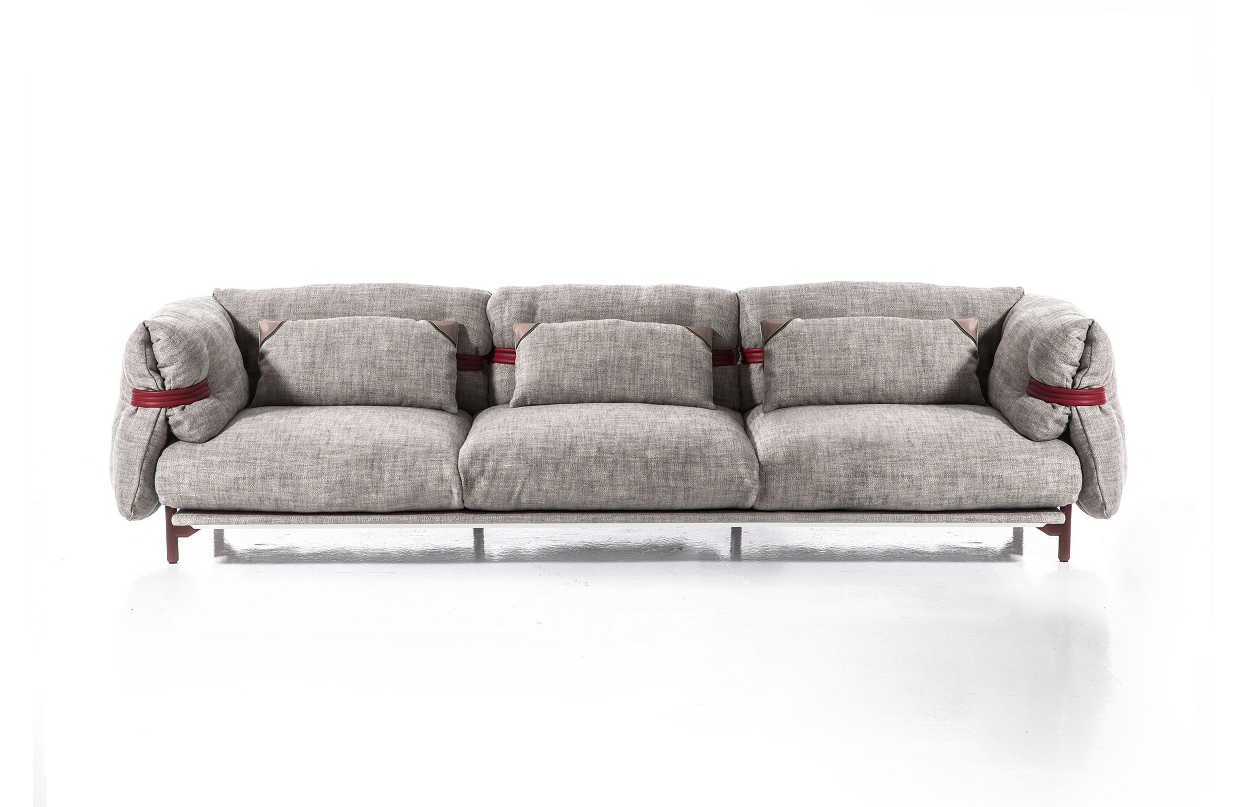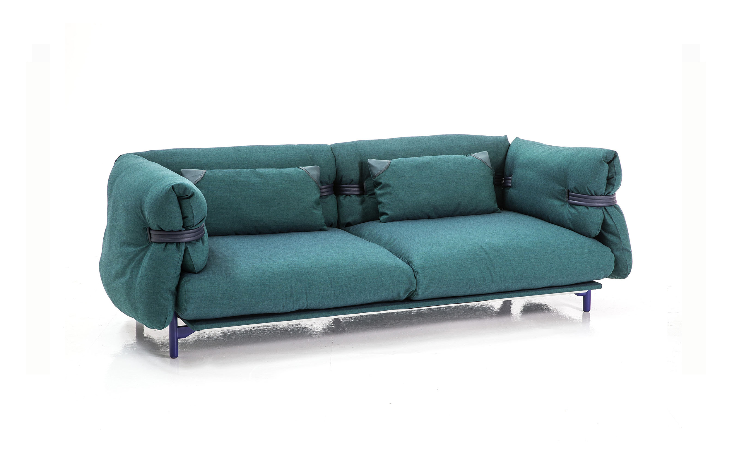舒适和柔软高于一切。一个开源的沙发,一个喜欢舒适的座椅的设计选择,它试图看起来和感觉比以往更柔软和舒适。它的结构被圈在编织的腰带里与柔软的坐垫交织在一起,使其完全放松。折叠的覆盖层强调了无忧无虑、没有定义的形状,进一步强调了用针织物来固定它的位置。一个具有不寻常的结构的破坏式沙发:铝框架可以自由组合,组合不同的组件,一起工作,提供各种和谐的定制。