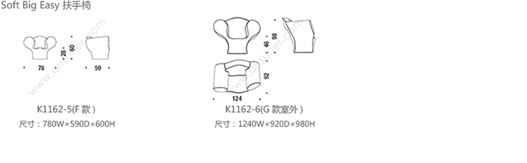 Soft Big Easy 扶手椅 系列尺寸/示意图