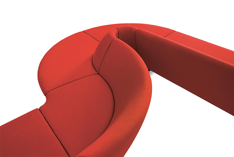 曲线优美,轻盈,极具雕塑感。汤姆迪克森的模块化系统对于等候区和大空间来说是很棒的选择。一个极简主义的系统,它可以适应各种各样的设置,在角落里、在中心区域或者在户外使用。它的名字是完美的,使用防火的聚氨酯火焰使它更适合于公共空间。钢脚的高度是可调的。