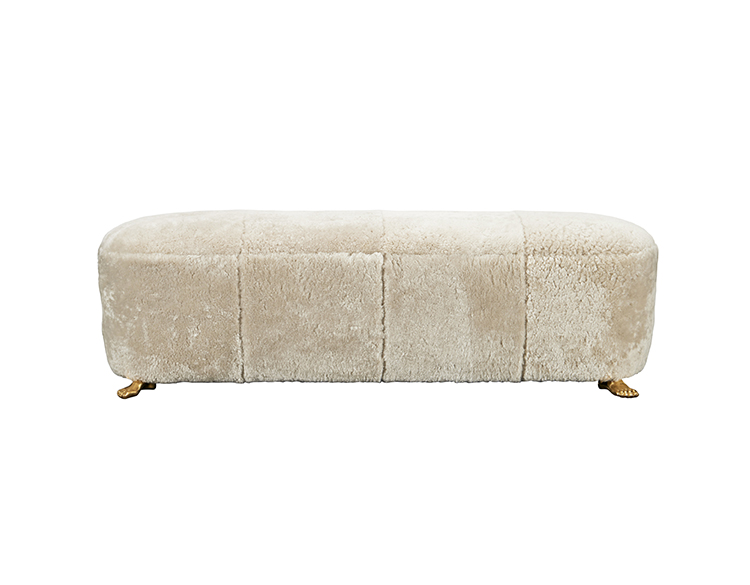 Foot Bench是我们受欢迎的Foot Stool的天然搭档。 这款长凳的柔软曲线采用奢华的自然羊毛皮制成,并安装在坚固的青铜铸造脚上。 意想不到且引人注目,它非常适合作为床尾凳,入口处的长凳,或作为客厅中时尚的奥斯曼。
