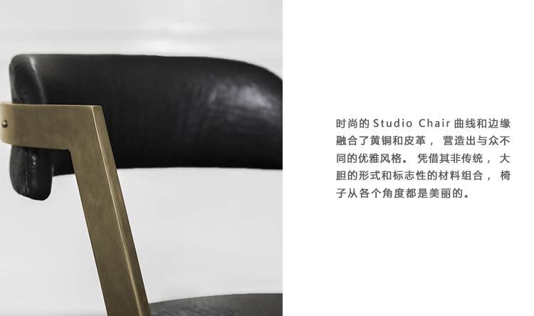 时尚的Studio Chair曲线和边缘融合了黄铜和皮革,营造出与众不同的优雅风格。 凭借其非传统,大胆的形式和标志性的材料组合,椅子从各个角度都是美丽的,非常适合作为临时的桌子,或餐椅。