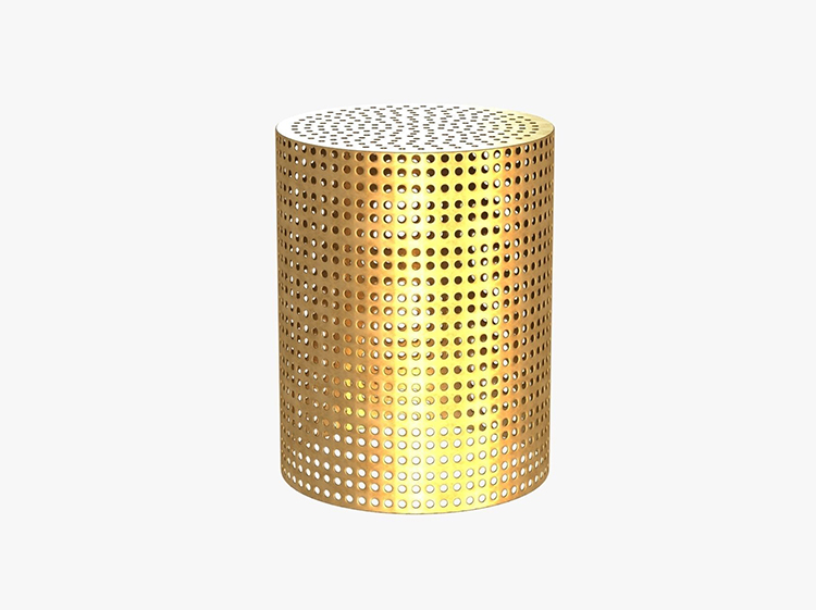 这款简约而经典的表款采用未经涂漆的抛光青铜制成。 穿孔细节为这款凳子或边几带来现代优雅。