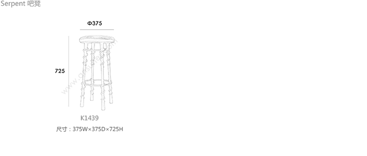 Serpent 吧凳 系列尺寸/示意图