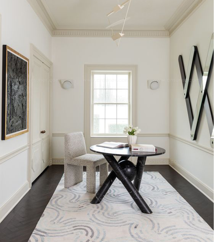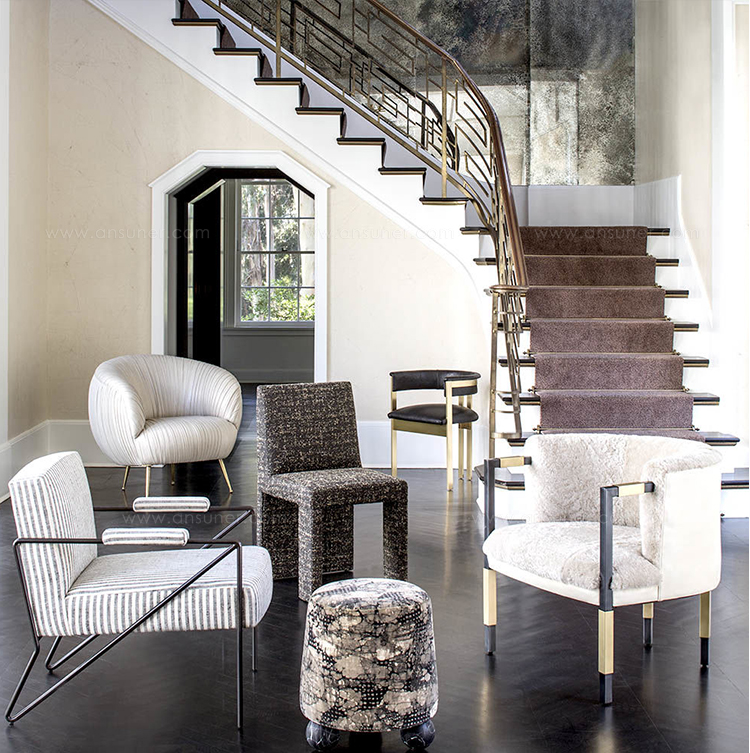 Thayer椅子是第一个完全软垫的餐椅,具有简单的图形魅力。 宽阔的前腿和坚固的后背为这款舒适的用餐或偶尔的椅子增添了建筑精神。 硬木框架采用双层细木工制成,可延长使用寿命。