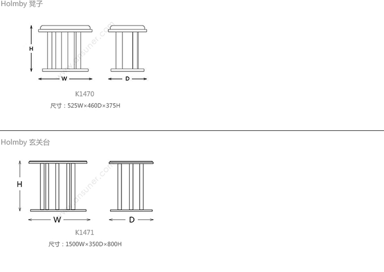 Holmby 凳子 系列尺寸/示意图
