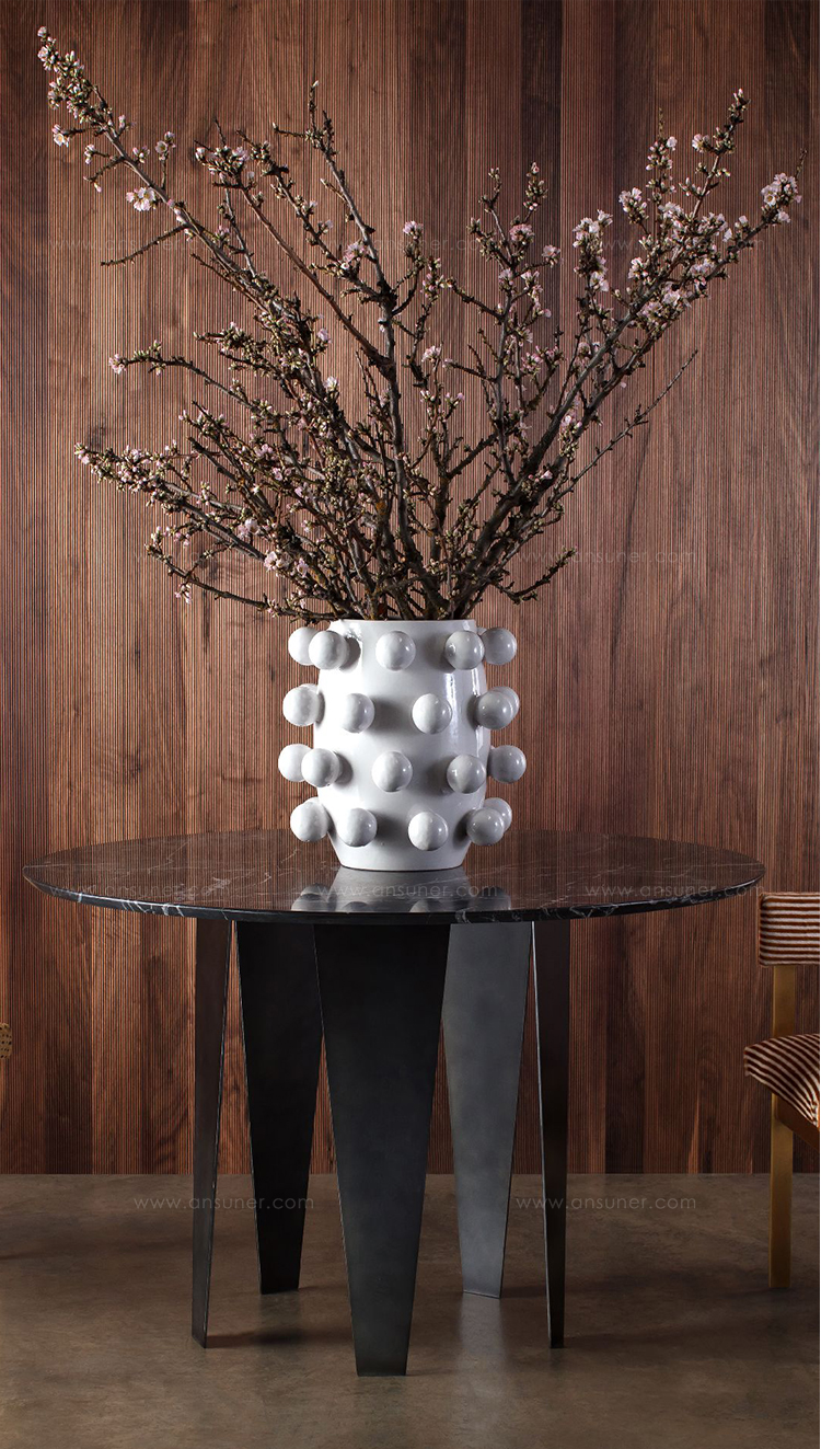 灵感来自凯利的爱的对比,这款充满活力的陶瓷花瓶与装饰球体一起被用作令人兴奋的细节,与流行系列中的其他作品相得益彰。 作为鲜花独立花瓶的完美之选,它是首选作品,使房子里的任何房间都活跃起来。