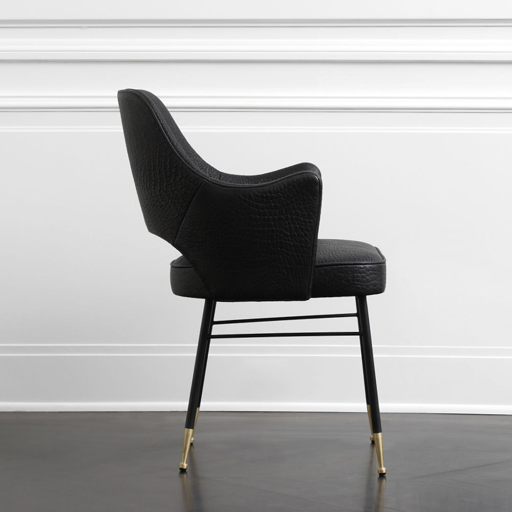 这款高架扶手椅融合了中世纪的欧洲风情和现代感,在深色木质家居图书馆和正式餐厅中一样舒适。 Rigby椅子采用柔软弯曲的手臂和略微倾斜的背部,带来舒适感。 黑色的钢底座上有实心的青铜木屐,可以用手转动,还可以滑动。