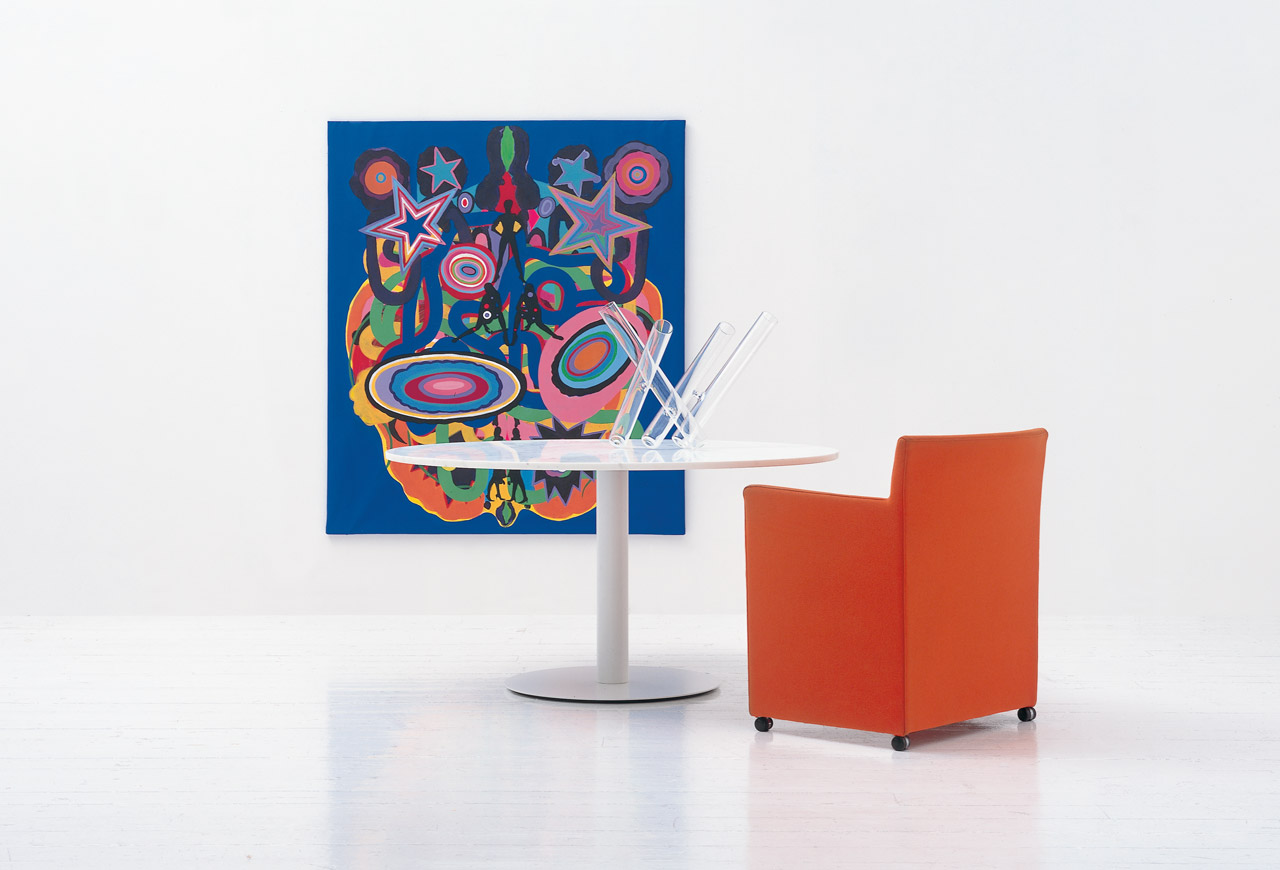 餐桌采用缎面或哑光漆面不锈钢制成,白色或无烟煤色,顶部采用macroter或光面漆木,所有颜色,天然橡木,雕像大理石。 底座完全可拆卸,顶部可以是圆形或方形。