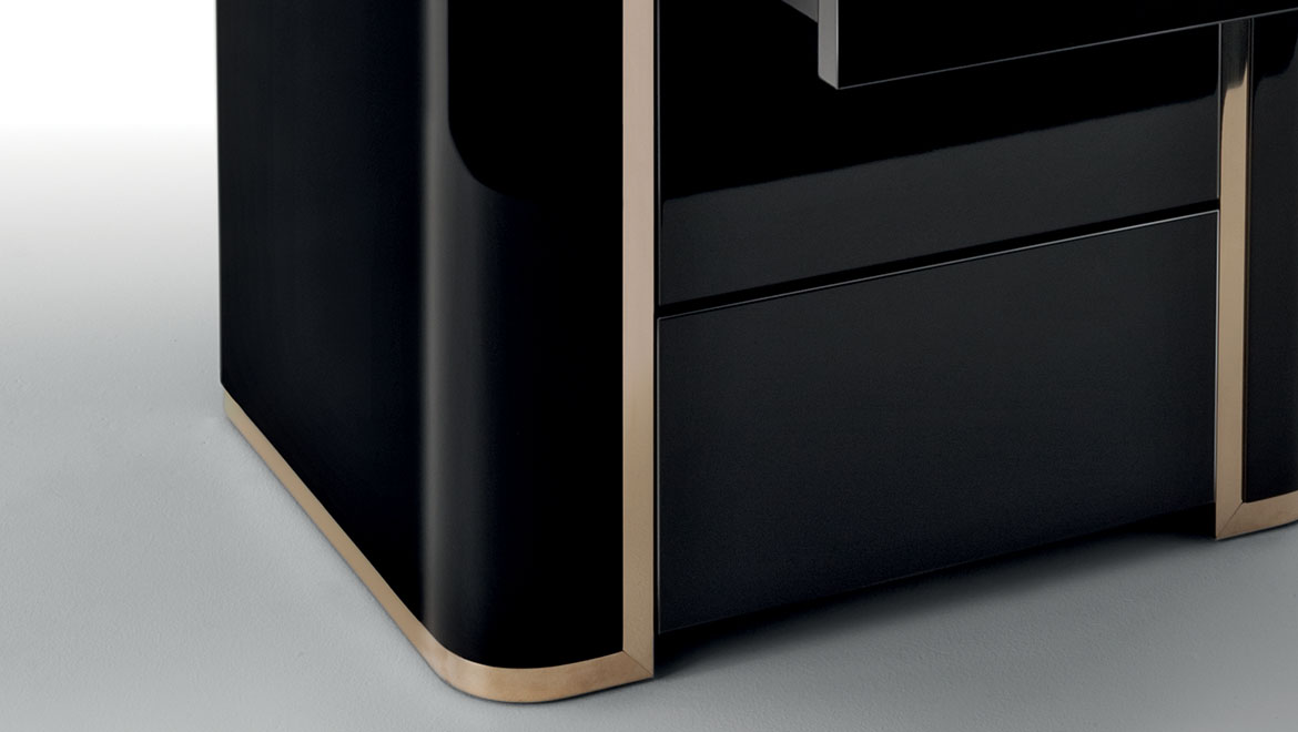 DRAWERS Glossy lacquered wooden frontal drawers or venereed Ebony