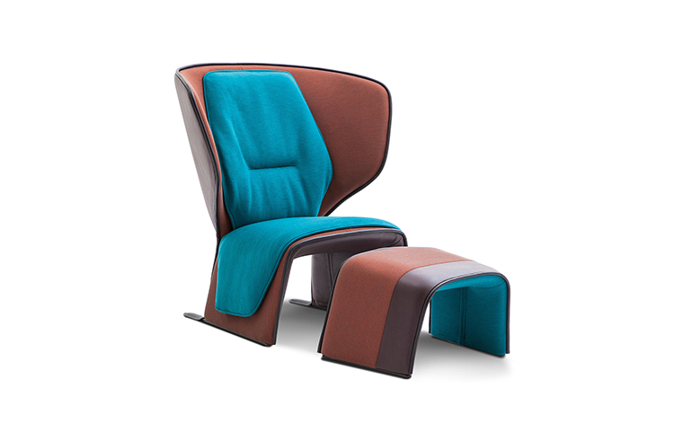 这款独特的扶手椅融合了传统和现代特色。其材料和颜色的组合适合多种用途:内部的软衬垫与外部的刚性元素和谐对话,染色皮革包边装饰突出了弯曲的线条。面料紧贴扶手椅的曲线,与外壳严谨、规整的结构形成对比,有五种不同颜色的标准组合。这款惬意的软包扶手椅的靠背在压力下可倾斜约12°,并可自动地返回到原来的位置,进一步增加了舒适感。结构:座椅和靠背采用钢管框架,并带有固定带。填充:密度可变无氟聚氨酯泡沫。底座:黑漆钢材,端部包覆黑色马鞍皮或闪光皮。软包饰面:布艺或皮革。