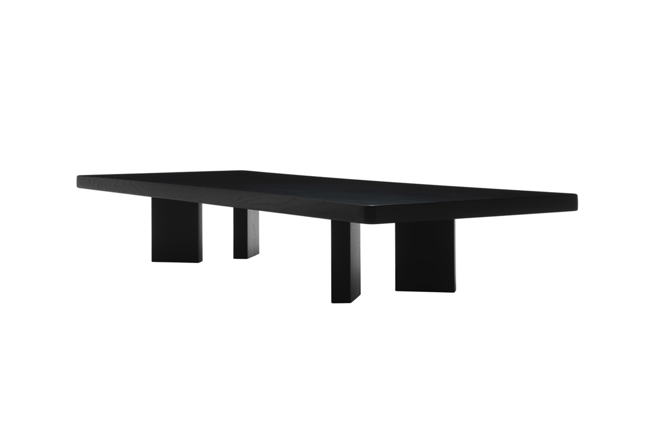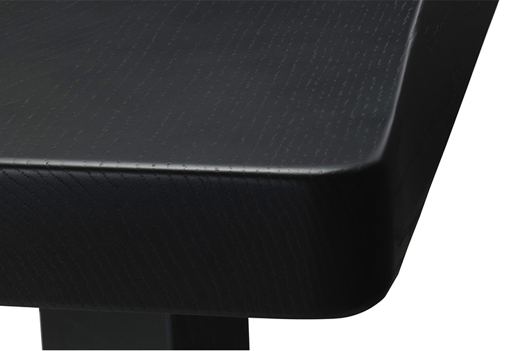 采用哑光黑色的珍贵木材或黑色实木橡木或美国黑胡桃木制造的矮桌。桌面厚度和凹面刻画了正式用语中的模型特征,并创造了令人讶异的轻盈感。该款矮桌是于1969年为日本驻巴黎大使馆设计的,这款咖啡桌是技术和中继合成的胜利。