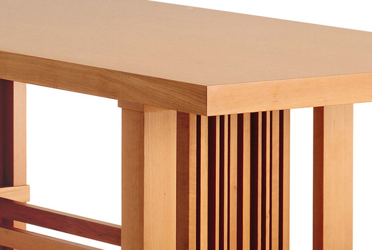 长方桌,采用天然樱桃木或樱桃木色的胡桃木制造。桌面拥有两种不同尺寸可供选择。