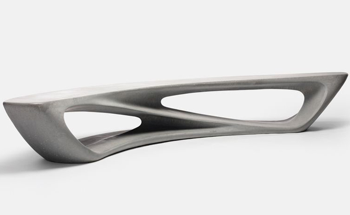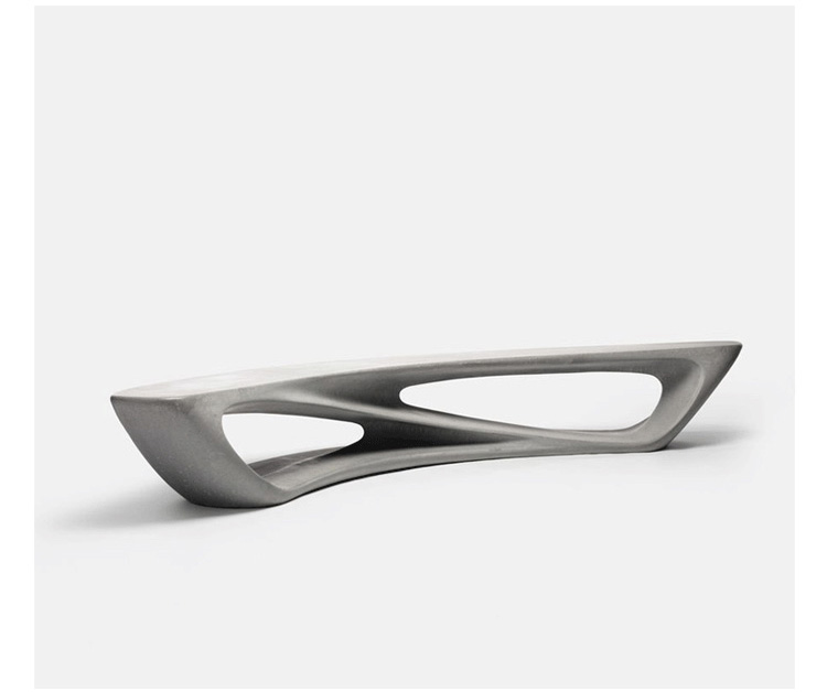 塑料材質一體成型製成,表面塗裝可選擇霧面或亮面烤漆。多功能性的設計,能應付各式空間的需求。建築般的立體雕塑,刻畫了一只流動的造型長凳。
