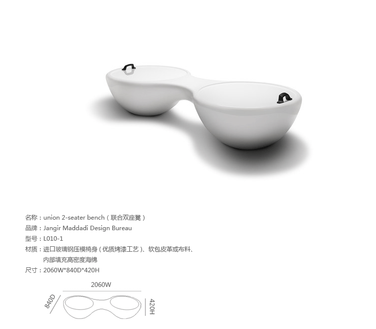 瑞典设计师Jangir Maddadi设计的这款联合座凳系列,可分为双座,三座及多坐,我司主要推出两座及三座,分别为:Union 2-seater Bench(联合双座凳)和Union 3-seater Bench(联合三座凳)。大家都知道,一般的座椅都是可以一个人或多个人一起坐,相互之间都不会受到影响。而这款连体休闲座椅却不同,外形很像一只陀螺,使用起来很像一个不倒翁,上面最多可以坐四个人。但是设计师并没有将这样的座椅让它们独立出现,而是用三张同样的座椅链接在一起,并且形成一个90度的直角,这样无论是陀螺还是不倒翁,都会很稳定的供给我们使用。当然,理论上来说,生产这种椅子,不仅可以做3件连体,4个,6个……都可以做。只是要考虑运输问题,或许3个是最完美的。这款连体休闲座椅不仅外形很优秀,而且还更加实用,使坐在上面的人有更多的空间,而且还可以保持面对面的互动。