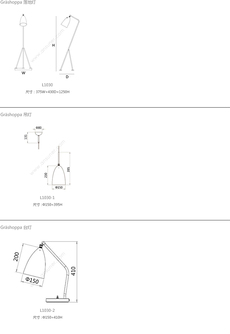 Grashoppa 落地灯 系列尺寸/示意图