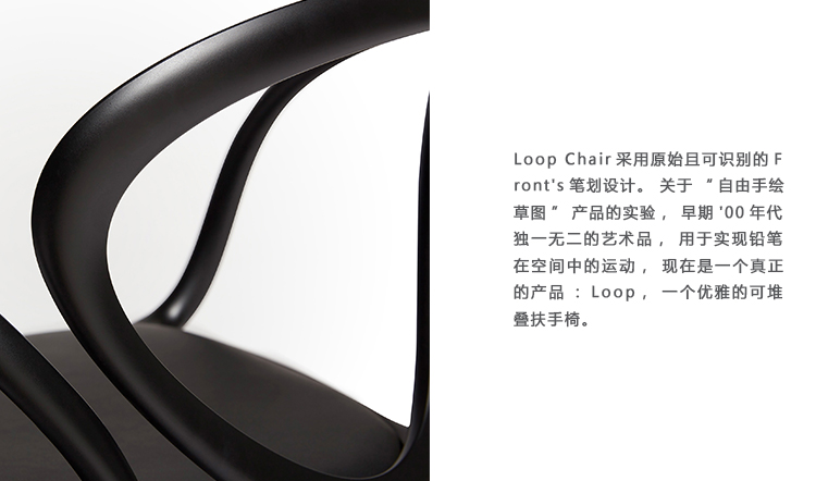Loop Chair采用原始且可识别的Front's笔划设计。 关于“自由手绘草图”产品的实验,早期'00年代独一无二的艺术品,用于实现铅笔在空间中的运动,现在是一个真正的产品:Loop,一个优雅的可堆叠扶手椅。 该主题是一系列可变截面曲线,重新考虑Thonet经典与新的,令人困惑的笔触,将椅子置于一个新的想象世界,尽管有空洞,它仍能维持自身。