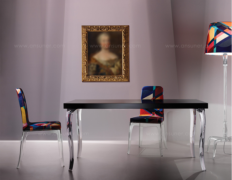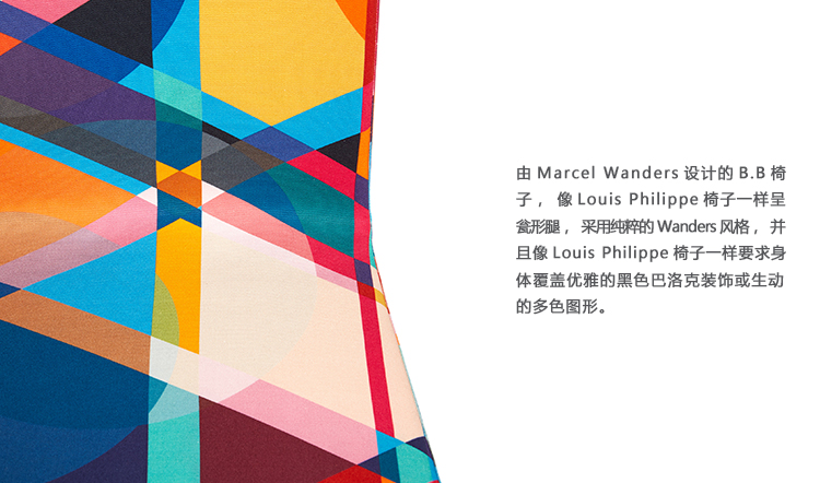 由Marcel Wanders设计的B.B椅子,像Louis Philippe椅子一样呈瓮形腿,采用纯粹的Wanders风格,并且像Louis Philippe椅子一样要求身体覆盖优雅的黑色巴洛克装饰或生动的多色图形。 B.B.拥有一个舒适而优雅的魅力灵魂,成为生活区的完美之选。 椅子与桌子相配,具有相同的腿部图案。 两条腿有两种颜色可供选择:黑色和透明。