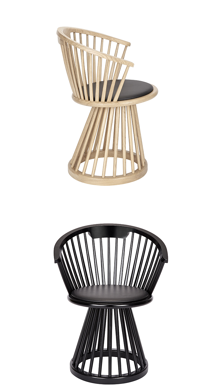 最初是一个戏剧性和雕塑的经典英国设计,风扇是作为一个高背椅,餐椅,凳子和桌子。凳子和椅子有一个黑色的皮革座椅垫,而椅子的特点是弯曲的背部,提供支持和舒适。可选用黑桦树或天然橡树。