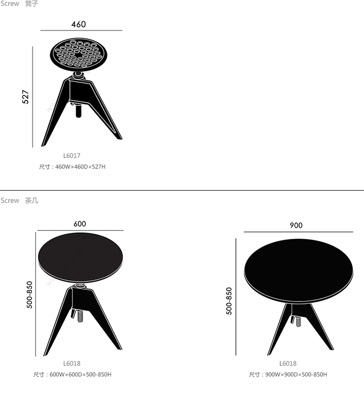 Screw 凳子 系列尺寸/示意图