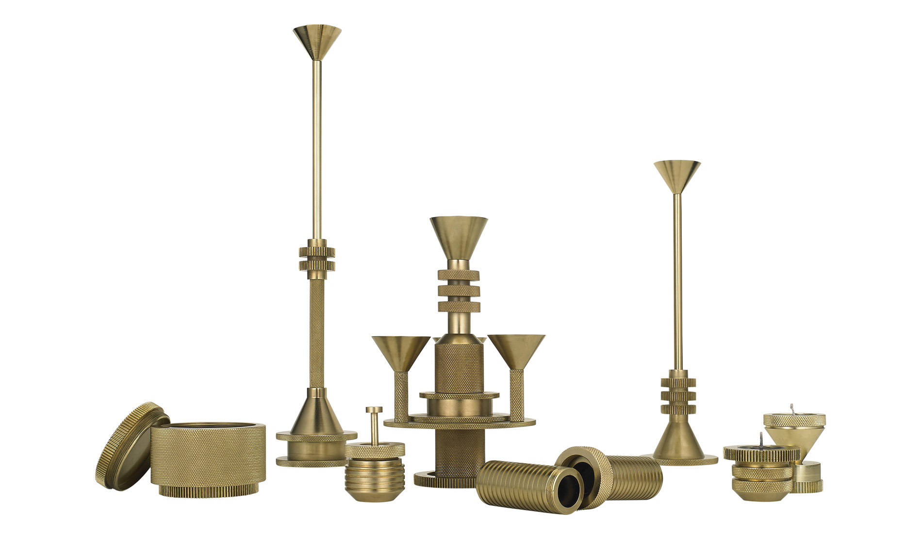 为了纪念伟大的英国工程师,Tom Dixon的Cog系列带来了精密工具与家居装饰。每一件都是利用传统的铣削和滚花技术,从铝制块和铝管中精心制作而成。然后将铝镀黄铜,抛光和涂漆。 这个过程给人的感觉是这些作品在某种程度上意味着更大的东西,但现在却被用于更简单的目的。