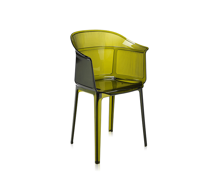 Papyrus Chair(纸莎草椅)是由Ronan & Erwan Bouroullec法国兄弟设计组合于今年为Kartell公司设计,并且在本次的米兰家具展中进行了展出。该设计的灵感来自于一把结构鲜明的古老座椅Linear,座椅本身非常舒适且重量很轻。其共有透明、黄、绿、紫、烟灰、棕、蓝和红八种颜色。这把椅子结合半透明的脚架,脚架“打磨”纤细的卵石状颗粒,并延伸至整个靠背的外轮廓,线条柔软和舒适。和整个结构都是透光的。因惊喜的做工和颜色的运用,使其非常吸引人。
