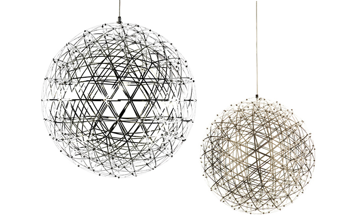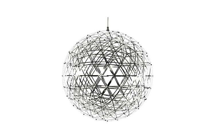 "The beauty of light was redefined with the Raimond pendant lamp basing on pure mathematics. Finally it is possible to watch the universe and enjoy the starlight while the night sky is cloudy. The Raimond pendant lamp enables this with its numerous LED’s that seem to float in space like real stars.Raimond consists of complex stainless steel grid nettings. The single trams from the netting are (similar to the planet orbits) arranged around an imaginary point.The Raimond Pendant Lamp is also available in different sizes and each one of them in a dimmable and non-dimmable edition."