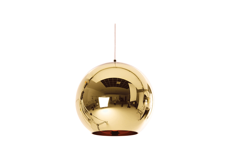 A pendant light made using copper, a material more commonly associated with solar cells and microwave radiation. The Copper Shade is created by exploding a thin layer of pure metal onto the internal surface of a polycarbonate globe. The result is a highly reflective surface with a warm metallic glow.