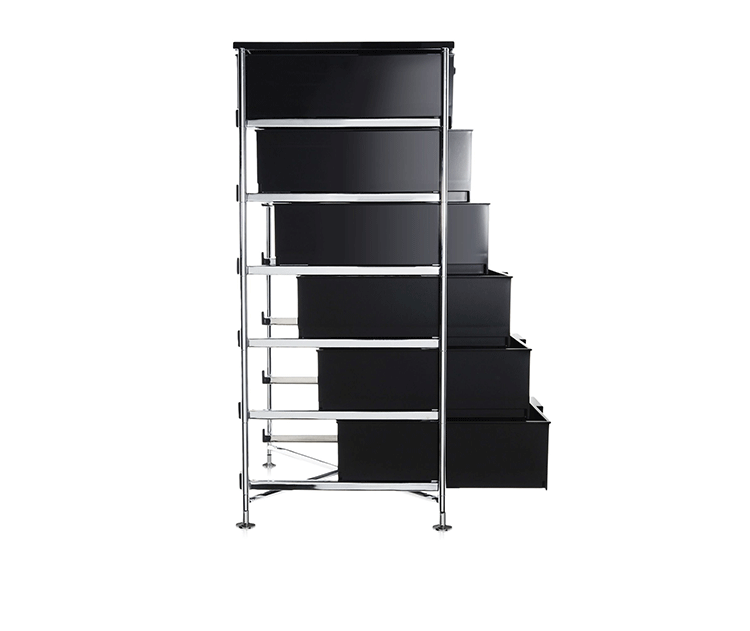 Mobil storage(移动储物柜)是由意大利国宝级设计师Antonio Citterio(安东尼·奇特里奥)设计的,他的设计跨越三大洲,已成为设计领域最活跃的渊博人士,1972年,他与著名品牌Arclinea厨具、flexform、Flos灯具等合作,1987年,为B&B设计的座椅获金罗盘奖.Mobil取自移动机制知名,带有随处收纳、移动变幻的多元满足,以多层抽屉式的收纳,搭配置物层版,不论是作为床边柜、工作室文件抽屉、生活收纳等,都非常合适。此外,另可选择滑轮式样、或是固定式座脚,自在搭配。