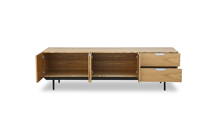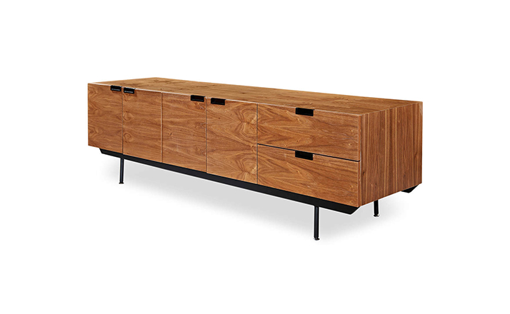 structure mid century modern credenza(结构世纪中期现代书柜)是Kardiel公司制作的经典实木家具。设计灵感来着 Cees Braakman于1958年的原创设计,其有着青铜色的脚架,镶嵌着把手。随着新技术和设计材料的使用,结构以焕然一新的样式出现,框架手工进行了精心雕琢,浑然天成又不失艺术性。制作采用精选MDF板基材胡桃木皮贴面、钢制脚架、环保油漆喷涂、做工精湛。