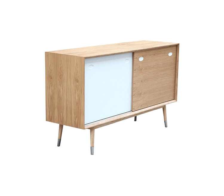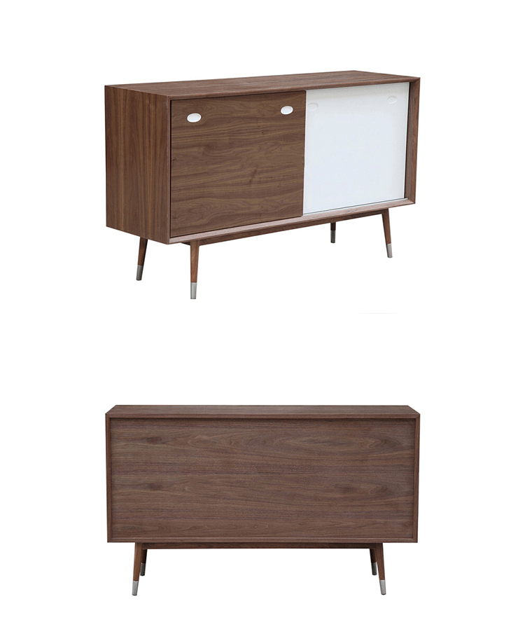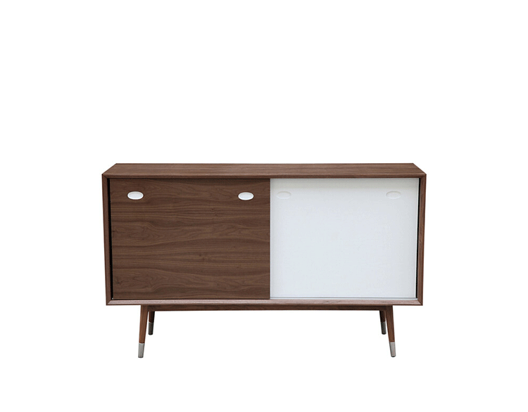 elroy credenza(埃尔罗伊餐具柜)是Kardiel公司制作的经典实木家具,干净、洁白,结合自然灰木色,六十年代中现代主义特色,设计本身也混合着设计师Soren Nissen & Ebbe Gehl的自然原始的现代风格。制作采用精选MDF板基材胡桃木或水曲柳木皮贴面、胡桃实木或水曲柳实木脚架、环保油漆喷涂、做工精湛。