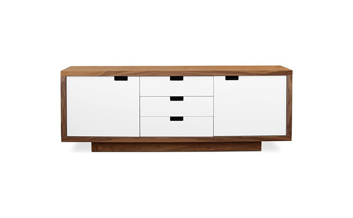 wilson cabinet(威尔逊柜)是一个多功能存储柜,辅之以白色多外套漆的门和抽屉。它具有集成的句柄和自闭的五金器件。门掩可调式货架。为客厅、餐厅或卧室的现代存储理想之选。制作采用精选MDF板基材胡桃木或水曲柳木皮贴面、胡桃实木或水曲柳实木脚架、环保净味油漆喷涂,做工精湛。