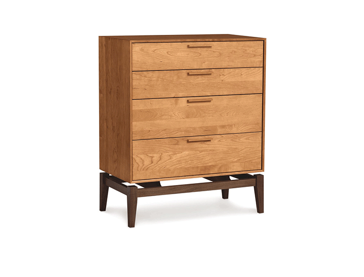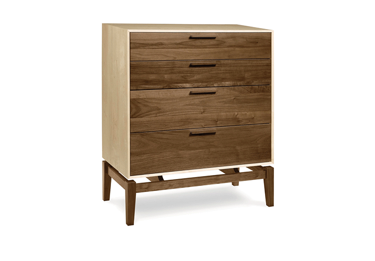 copeland soho 4 drawer dresser(科普兰soho 4抽梳妆台)是Copeland Furniture公司copeland实木系列之一。我们塑造环境,然后环境塑造我们,copeland旨在传递的舒适度和清晰度的感情。设计借用了一些最优秀的传统和当代的设计要素,非常具有特色。这个中世纪现代风格的设计,提供了4层平滑抽屉存储空间,可以使您更好的归纳自己的物品,提供大量存储空间。制作采用精选MDF板基材、进口美洲胡桃木,贴面、实木脚架、彩色装饰边、环保净味油漆喷涂、做工精湛。