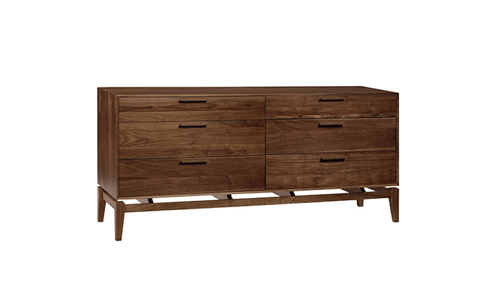 copeland soho 6 drawer dresser(科普兰soho 6抽梳妆台)是Copeland Furniture公司copeland实木系列之一。我们塑造环境,然后环境塑造我们,copeland旨在传递的舒适度和清晰度的感情。设计借用了一些最优秀的传统和当代的设计要素,非常具有特色。这个中世纪现代风格的设计,提供了6层平滑抽屉存储空间,可以使您更好的归纳自己的物品,提供大量存储空间。制作采用精选MDF板基材、进口美洲胡桃木,贴面、实木脚架、彩色装饰边、环保净味油漆喷涂、做工精湛。