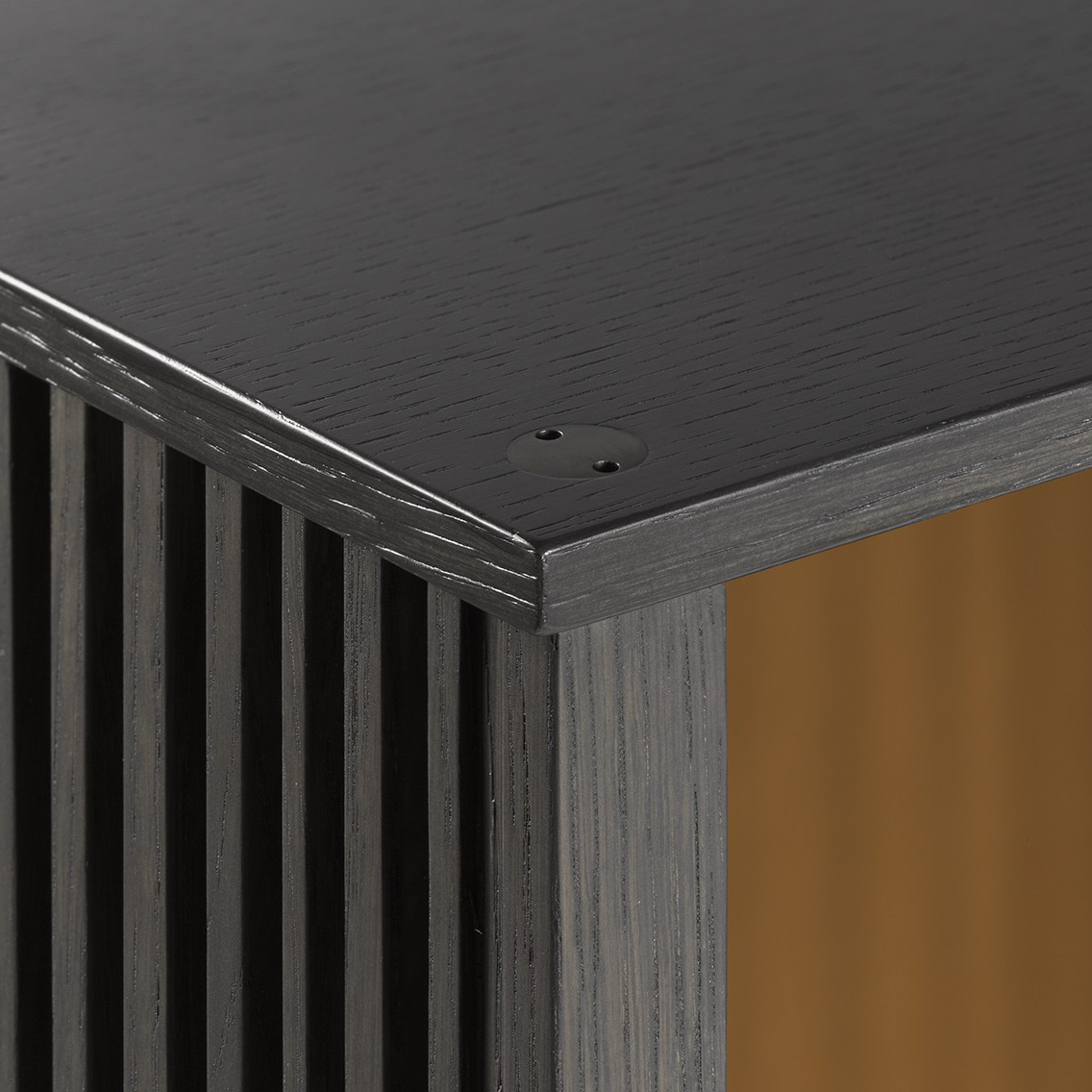 一系列的薄垂直木制棒光网格形式,无形的水平轨道上运行从上到下。 每个网格可以根据需要创建不同的序列。 固体和空洞的分数波动,光与影。 一个好玩的游戏,允许的内容、书籍和对象,没有完全揭示。 最先进的技术结合传统材料,木材和马鞍皮革,形成一个固体和简约的结构。