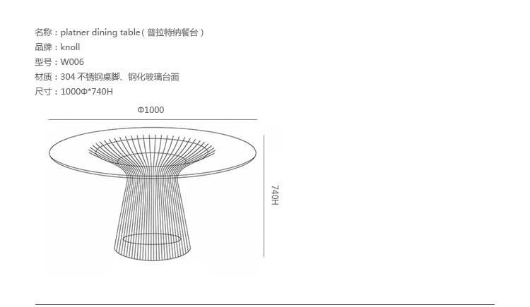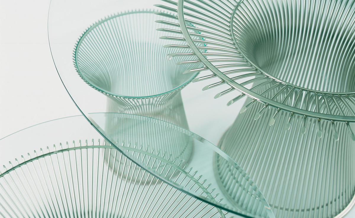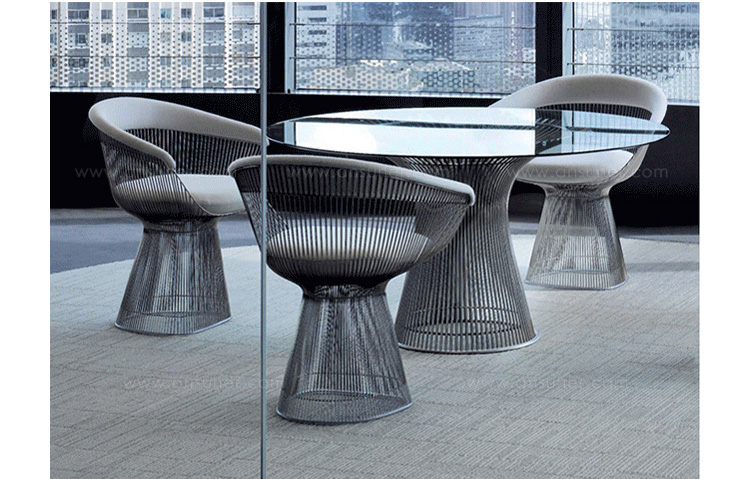 1966年榮獲 American Institute of Architects International Award 美國建築協會國際大獎的 Platner Chair,在設計師 Warren Platner 的創意下,將鋼絲雕塑轉化成一系列收藏級的傢俱,創造了現在被認為是當今時代的設計圖標。