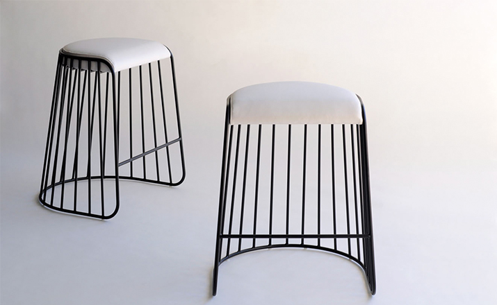 "The Bride's Veil Stool family’s unique language is meant as a graceful alternative to the archetypal bar stool.The strikingly elegant metal base is available in smoked brass,polished chrome,burnt copper,or powder coat,while the top is offered in COM upholstery.At every angle these stools offer a visual treat"
