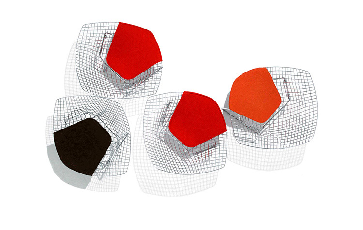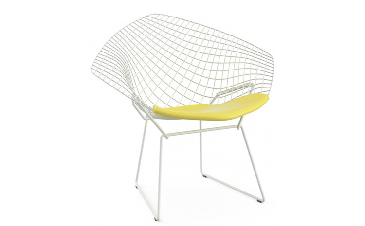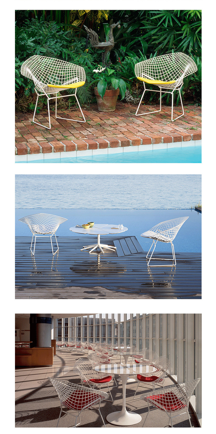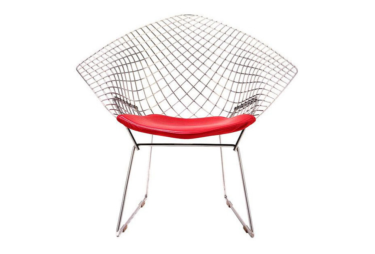 Bertoia Diamond Chair 是 Harry Bertoia 延伸其珠寶設計與金屬製作概念的一件兼顧實用與藝術的作品,精緻的外觀下,卻不失椅子功能上的舒適及耐用性