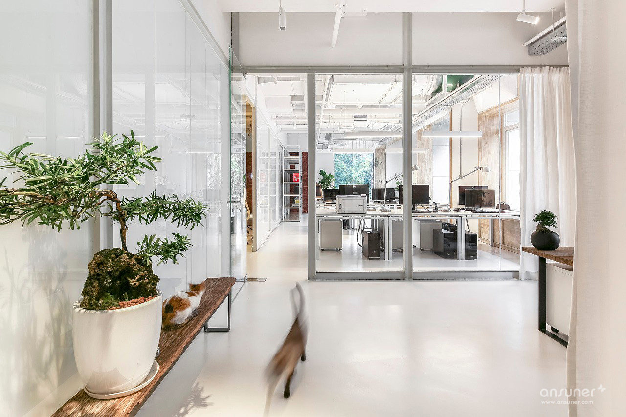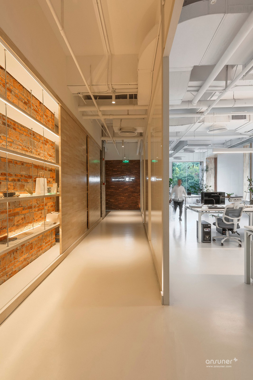 主要材料:超白玻璃、工字钢、橡木、红砖、白色环氧树脂地板、麦秸板