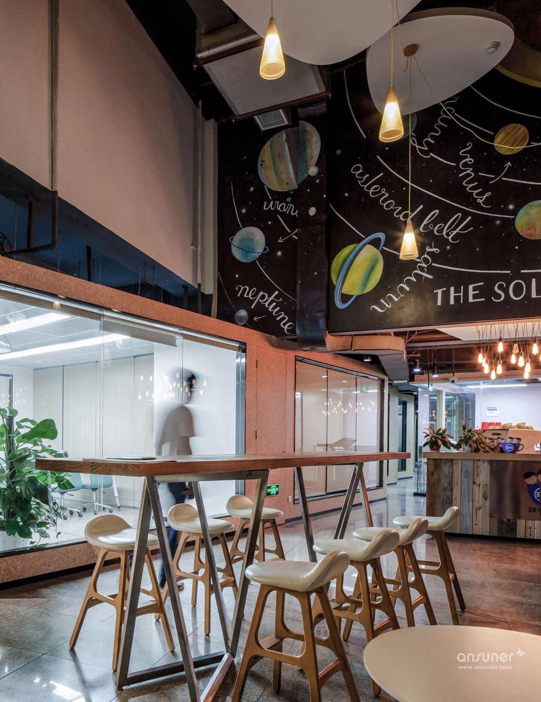 华强国际创客中心是为开发者和创业者提供的交流和共享空间,该创客中心的设计完全遵照LEED白金标准创建。办公室的内部以LOFT风和自由简洁爲设计主导,黑白灰则为整个空间的主色调,多彩的家具和饰品为辅。还在空间中融入和集成图形匹配,充分体现了现代办公的绿色环保、人性化的办公空间理念。