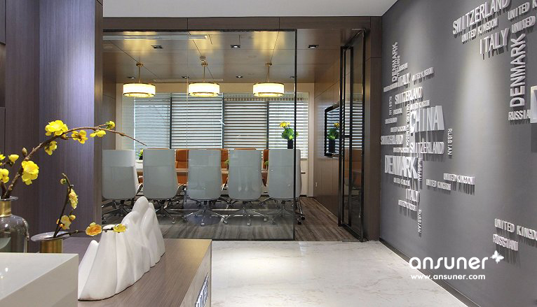 主要材料:石材、地毯、黑色不镜钢、壁布、皮革、烤漆板、木地板、木饰面
